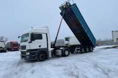 Naczepa w gotowa do pracy, opony około 60 %.